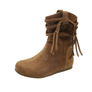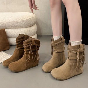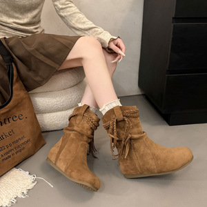 复古内增高短靴女2025秋季新款显瘦软底褶皱勃肯靴加绒短筒堆堆靴