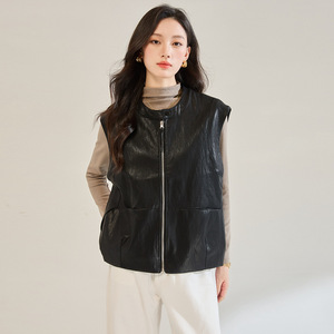 25秋季金属丝蛋白皮pu皮马甲外套女复古立领拉链无袖款皮衣29012