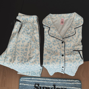 小众设计轻奢家居服轻舒绒轻舒绒蓝豹纹长袖长裤睡衣套装