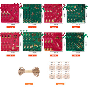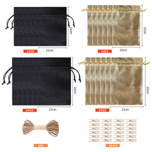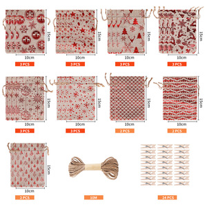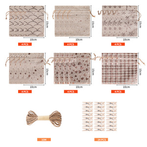 圣诞节礼物袋24pcs套装麻绳麻布抽绳束口袋节日派对糖果礼品袋