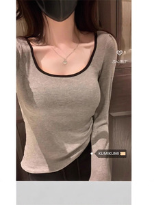 【工厂现货】磨毛加厚长袖修身T恤秋冬带胸垫内搭打底衫短款上衣