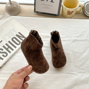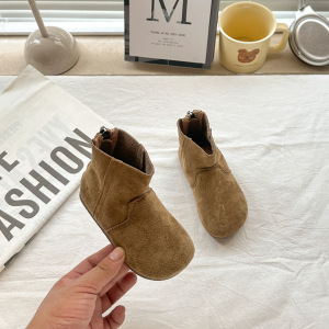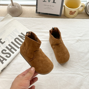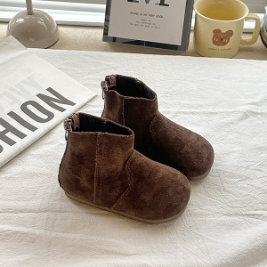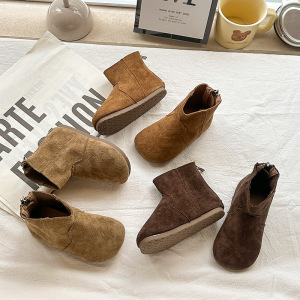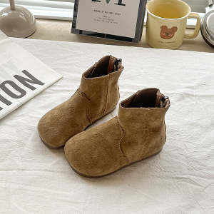 韩版女童磨砂真皮短靴秋冬新款儿童勃肯皮靴女宝马丁靴侧拉链单靴