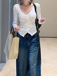 槿一 9/14 10点【韩女建模】掐出蚂蚁腰!纯欲风V领抽褶纽扣长袖