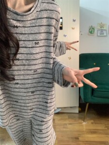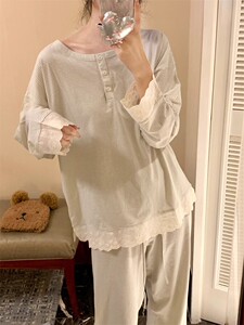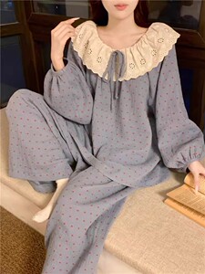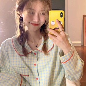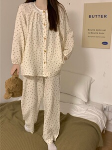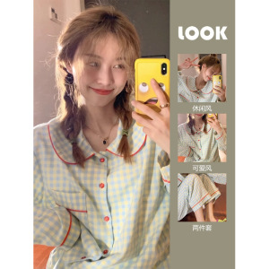 8819黄兰格2025春秋新款长开衫网红ins学生睡衣女休闲家居服官方