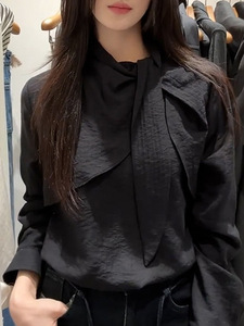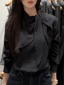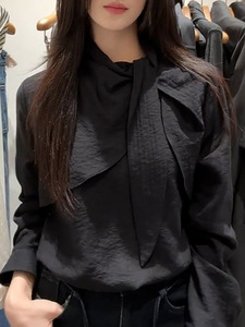 秋季欧货超火高级小众不撞款上衣独特漂亮减龄洋气黑色领结衬衫女