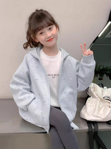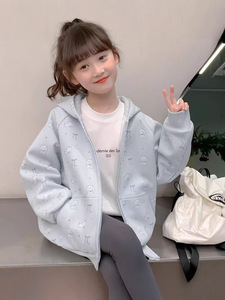 女童洋气卡通连帽外套2025新款中大童韩版时髦印花拉链开衫卫衣潮