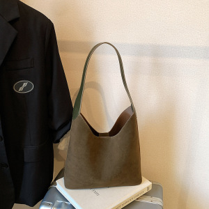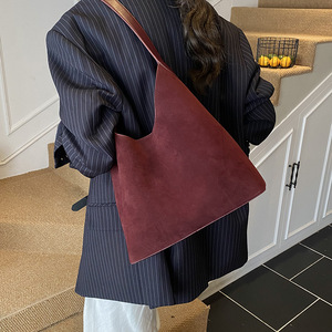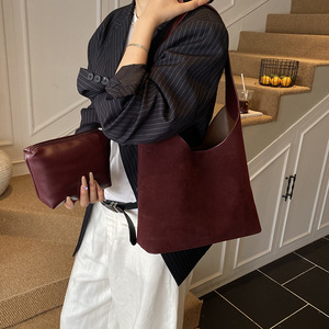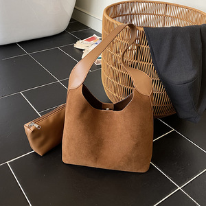 韩版简约麂皮绒托特包女2025秋冬新款潮百搭子母包通勤手提水桶包