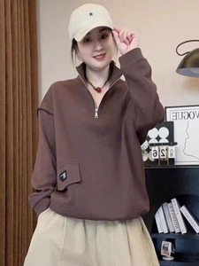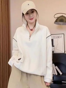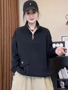 时尚半拉链立领纯色长袖卫衣2025秋季新款简约休闲休闲立领上衣