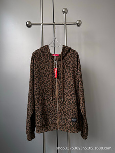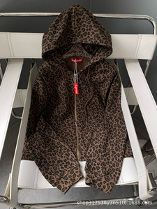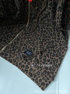 sup豹纹连帽卫衣25秋冬新款男女同款华夫格拉链抽绳外套上衣