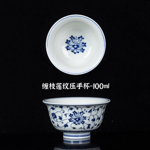 景德镇永乐青花压手杯复古缠枝莲品茗杯主人杯单杯功夫喝茶碗茶盏