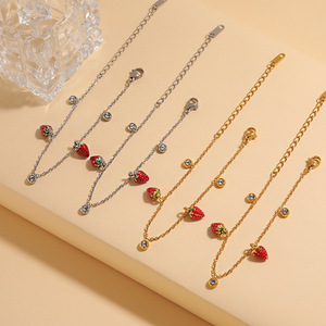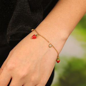 欧美ins风小巧热带水果草莓手链女滴胶个性不锈钢18KPVD镀金手饰
