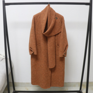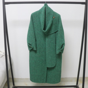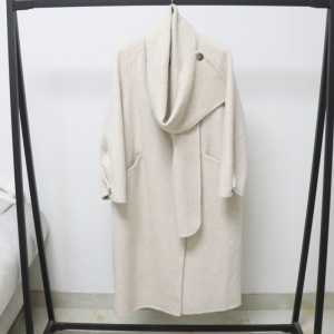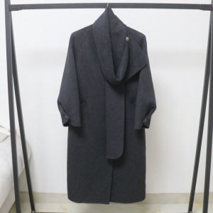 黑灰色围巾双面羊毛大衣女中长款2025秋冬新款高级感韩版羊毛外套