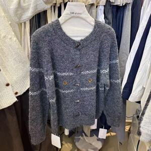 秋冬新款圆领牛角扣针织衫开衫女日韩风跨境森系绣花休闲百搭毛衣