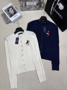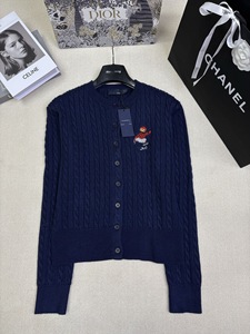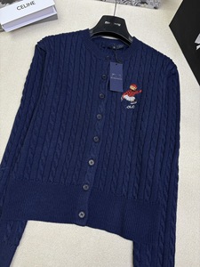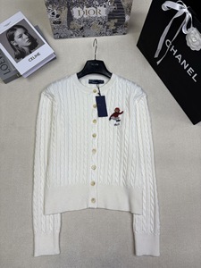 黄色开衫针织外套女2025春秋新款小熊刺绣麻花毛衣外搭高级感上衣