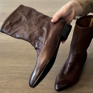 文艺复古大筒围烟筒靴2025新款秋冬新款尖头低跟中筒马丁靴002-1A
