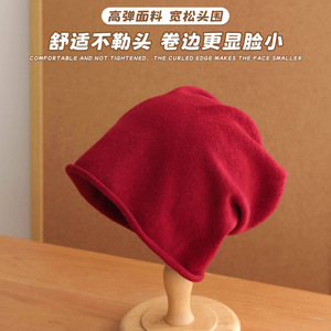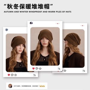 秋冬慵懒堆堆帽日常休闲百搭套头帽子护耳保暖冷帽纯色包头帽男女
