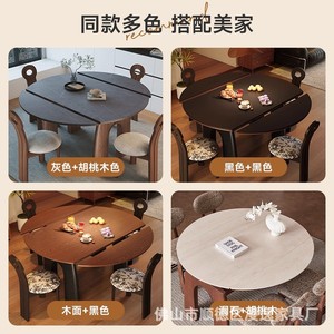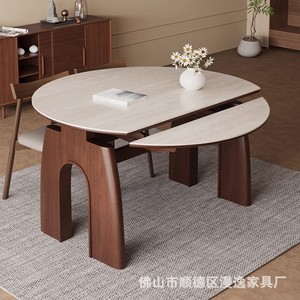 中古风实木洞石岩板可伸缩餐桌2025年新款家用复古风方圆两用饭桌