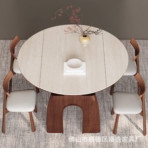 1.2m伸缩餐桌;洞石岩板桌面-洞石岩板