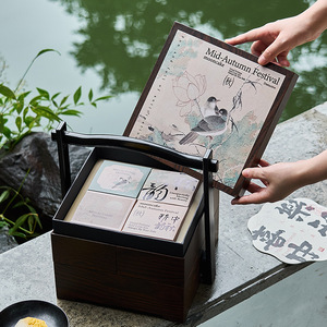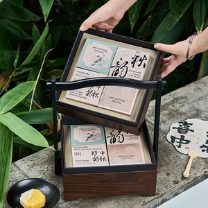 秋韵木纹双层锦盒1套 秋韵木纹双层锦盒10套 秋韵木纹双层锦盒50套 金秋满庭双层手提锦盒1整套含提