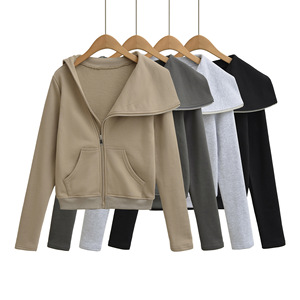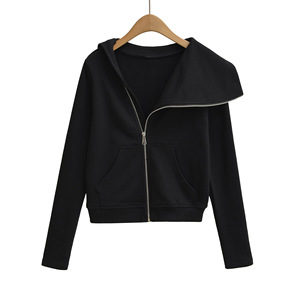 设计感拉链斜领开衫卫衣女2025秋季款美式不规则翻领修身外套上衣