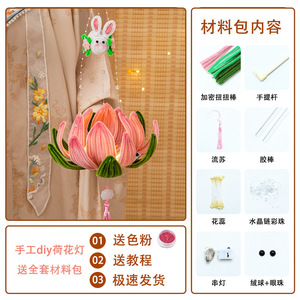 中秋节灯笼扭扭棒手工diy材料包手提发光荷花灯莲花灯小兔子灯笼