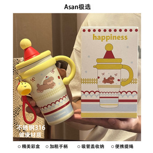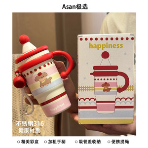 Hello Kitty大容量卡通保温杯女生ins办公室吸管学生保冷冰霸杯子