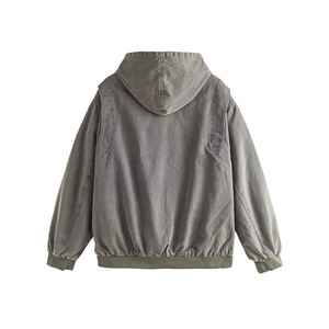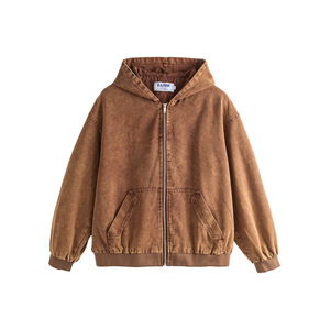 2025秋季新款复古水洗做旧外套男开衫连帽夹克