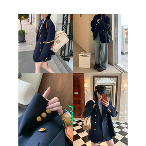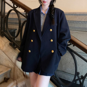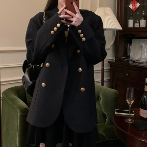预售休闲黑色西装外套女春秋季新款气质金属扣西服上衣