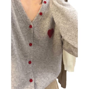 小个子灰色v领短款开衫毛衣外套女春秋季爱心刺绣针织衫长袖上衣