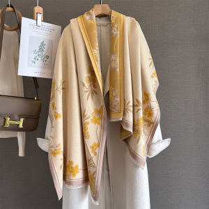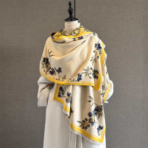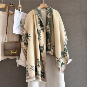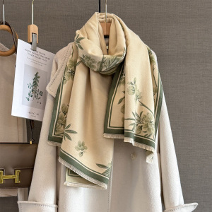 秋冬新款法式复古植物花卉提花围巾女士百搭加厚保暖御寒围脖披肩