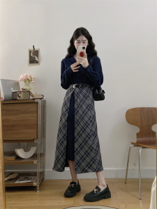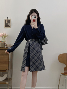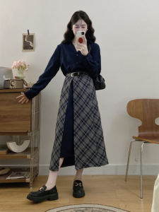 大码复古假两件长袖连衣裙女秋季高级感衬衫裙胖MM遮肚显瘦长裙子