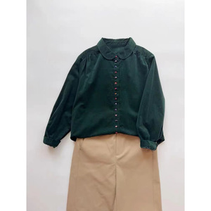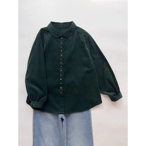 复古深绿色灯芯绒衬衫女 2025秋冬百搭宽松纯棉条绒上衣