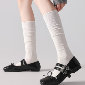 韩国小腿袜子女纯色堆堆长筒袜春秋薄款绵羊毛透气显瘦jk袜配靴子