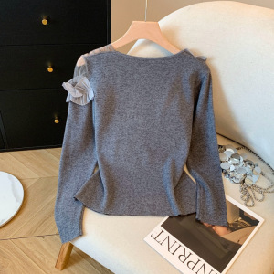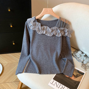 2025秋冬新款打底针织衫单边网纱拼接上衣内搭长袖T恤