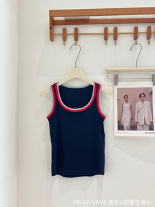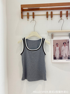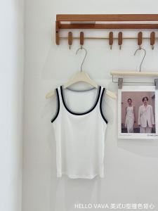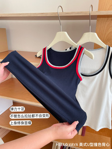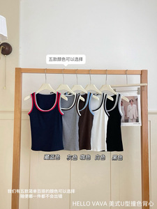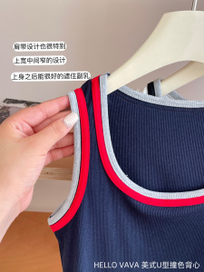 HELLOVAVA美式U型撞色背心女士遮副乳宽肩带韩版修身百搭打底上衣