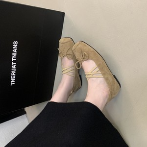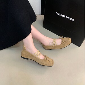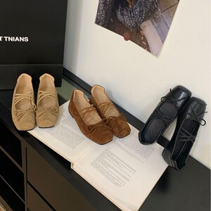 2025新款方头绒面蝴蝶结软底套脚百搭豆豆孕妇女单鞋