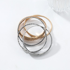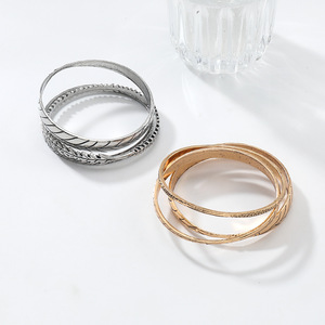 ZA欧美夸张大牌树叶纹路多层合金六件套手镯女士秋款时尚跨境货源