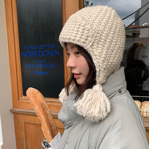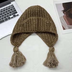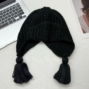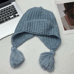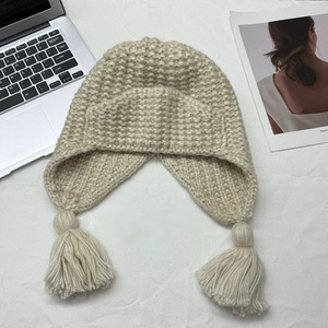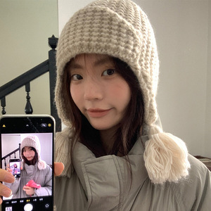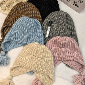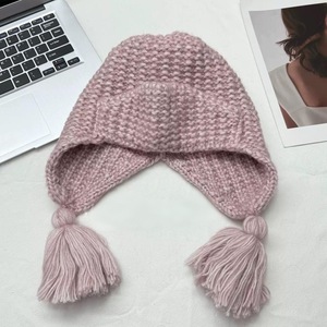 俏皮可爱流苏辫子帽冬天粗毛线翻边针织帽韩国保暖护耳飞行帽女生
