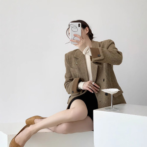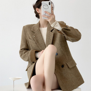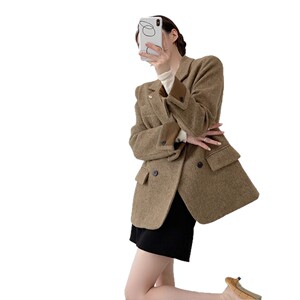 预售咖色休闲设计感小众毛呢西装外套女冬季新款气质女士西服