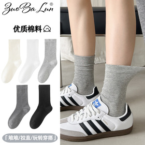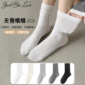 全棉袜子女春秋中筒袜纯棉松口无骨月子袜吸汗透气女士堆堆袜批发