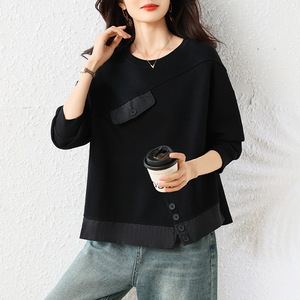 实拍大码女装秋季新款气质拼接时尚显瘦休闲宽松卫衣女