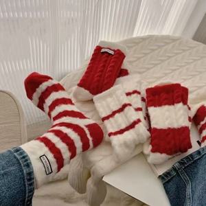 睡眠袜澳绒保暖加绒加厚居家地板袜中筒袜女秋冬季红色本命年袜子