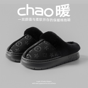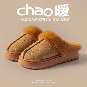 冬季居家居北欧风情侣皮拖鞋室内防滑静音高档网红男女保暖棉拖鞋