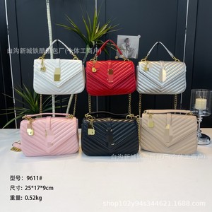 2025新款女包黑色裂纹皮革迷你链条包手提邮差包斜挎单肩包包