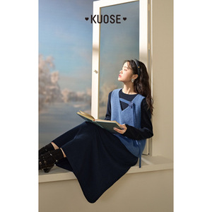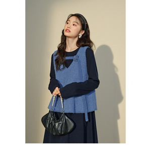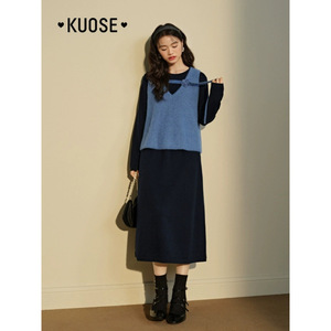 孕妇连衣裙2025秋冬季新款立体花针织马甲毛衣哺乳连衣裙两件套装