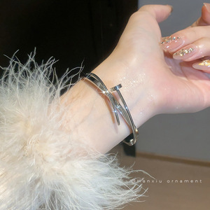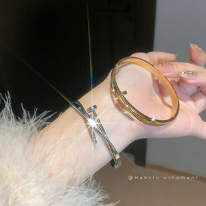 欧美跨境不锈钢光面圆形开口手镯简约时尚个性手环轻奢高级感手饰