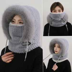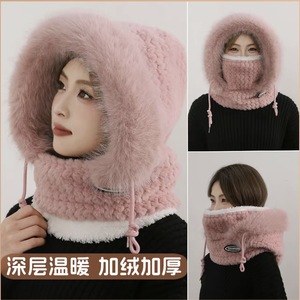 冬季新款防寒雷锋帽围脖一体防风护耳毛绒帽子加厚保暖骑车套头帽