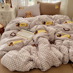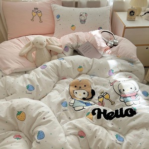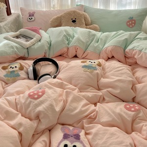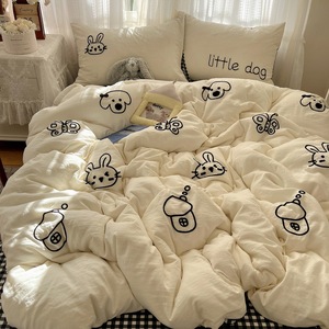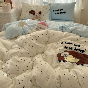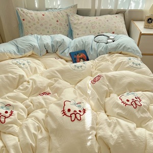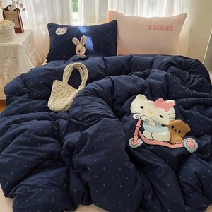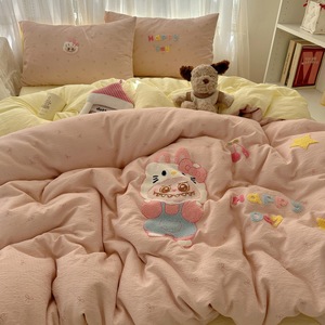 床用纯水洗棉四件套卡通kt猫贴布绣可爱毛巾绣云朵棉质被套四件套