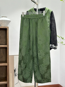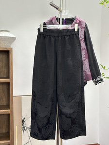 秋季新款国风人丝提花宽松休闲高腰显瘦花苞阔腿裤后松紧腰设计感