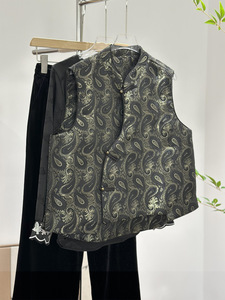 新国风中式马甲外套女秋季提花立领复古唐装马夹日常叠穿坎肩上衣
